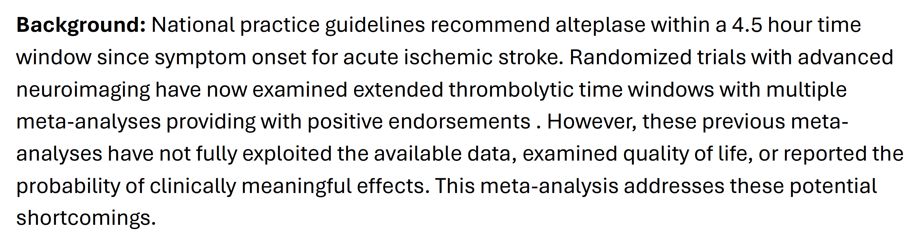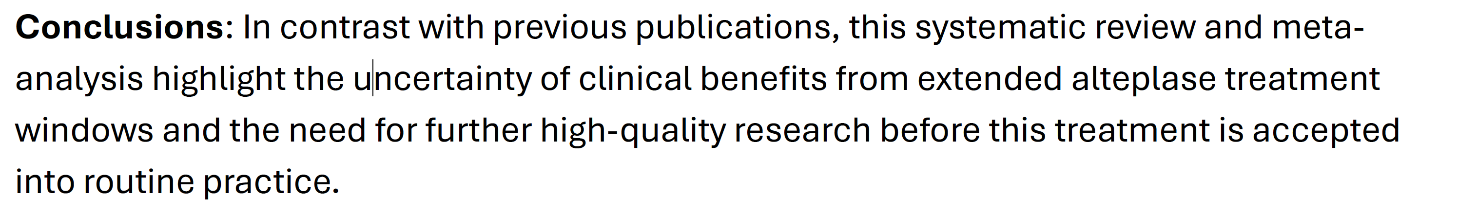 I am obviously biased but I do think there are several scientific interesting findings in our study, not the least being that there have been 12 previous meta-analyses on this subject, although there have only been four original randomized trials. All 12 meta-analyses have reached the same conclusion, namely that extended thrombolysis is an effective therapy.